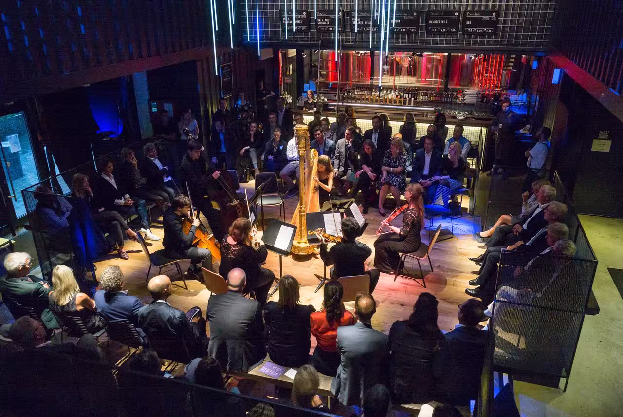 Das Team der Urbanen Mitte und COPRO konnten bereits einen Tag vor Beginn des traditionellen Bergmannstraßenfests in Kreuzberg am 30. Juni 2017 ein musikalisches sowie kulinarisches Highlight erleben. Auf dem Areal der Urbanen Mitte am „Park am Gleisdreieck“ veranstaltete COPRO gemeinsam mit den Nachwuchskünstlern der Berliner Philharmonie ein Hauskonzert in ausgelassener Atmosphäre. Neben klassischen Werken von Franz Schubert und Kurt Weill kamen die rund 100 Gäste auch in den Genuss impressionistischer Stücke der Komponisten Claude Debussy und Maurice Ravel. Das künstlerische Hörerlebnis fand im Container-Brwhouse der Craft-Beer-Brauerei BRLO statt, der das Areal auf der Urbanen Mitte von COPRO im Rahmen der sogenannten Pioniernutzung zur Verfügung gestellt wird. Mit der kulturellen und gastronomischen Pioniernutzung wird der Ort bereits vor dem Baubeginn für die Öffentlichkeit zugänglich gemacht. Entworfen wurde der Bau vom Berliner Architekten-Trio GRAFT.