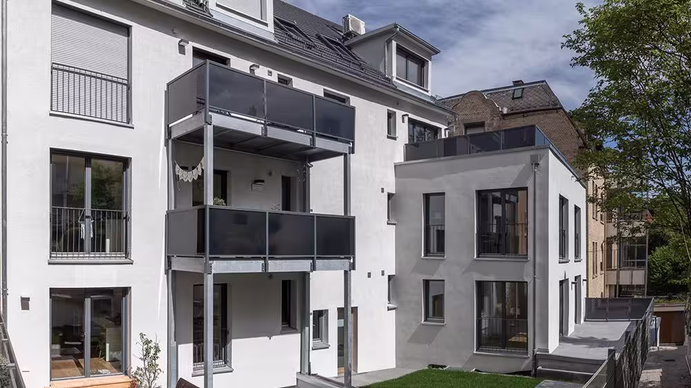 Das Gebäude wurde nach KfW-Effizienzhaus-85-Standard saniert: moderne Grundrisse, durchdachter Innenausbau und zahlreiche Freiflächen in Form von Balkonen, Terrassen oder Patios schaffen ein wohnliches und helles Ambiente.