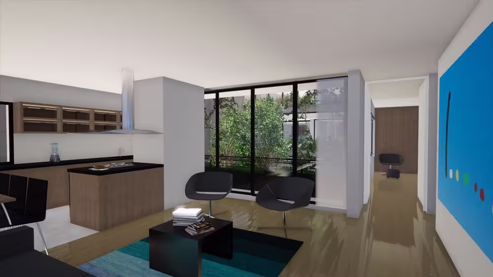 Das Konzept verbindet den kolonialtypischen Innenhof mit der üppigen Vegetation Bogotás: Das Gebäude verschmilzt mit den grünen Hügeln der Umgebung, große Panoramafenster fluten die Räume mit Licht.